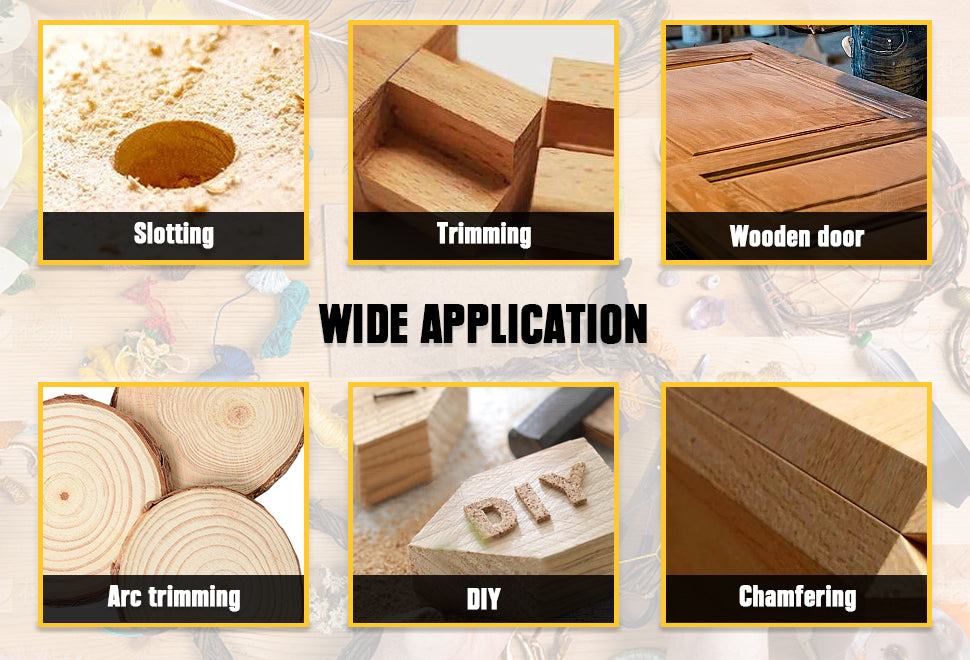 - Various Applications:The cutting palmming tool is widely used in a range of cabinetry and woodworking applications such as wood processing, laminating slotting, edge trimming, handcraft production, chamfering, grooving, surface finishing, curve cutting and other DIY activities